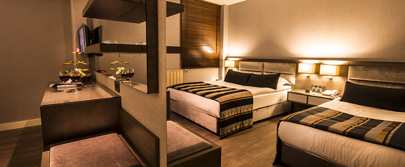 Capacity: up to 3 guests (2 for main beds + 1 for extra bed) Room equipment: double bed 160*210 cm or two single beds 90*210 cm, wardrobe with shoulders, air conditioning; TV with remote control connected to satellite TV channels; telephone for internal communication with the hotel administration and the restaurant. The room has a built-in kitchen with a sink for washing dishes, a tabletop electric stove, an additional set of dishes and kitchen utensils, and a kettle nearby. The bathroom is combined with a shower. Slippers, toiletries and the necessary set of towels are provided. Rooms are located in cottages located next to the administration building and parking.